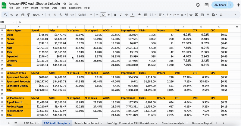 Amazon PPC Audit Sheet - Uplift Sales, Cut Down Wasted Ad Spend